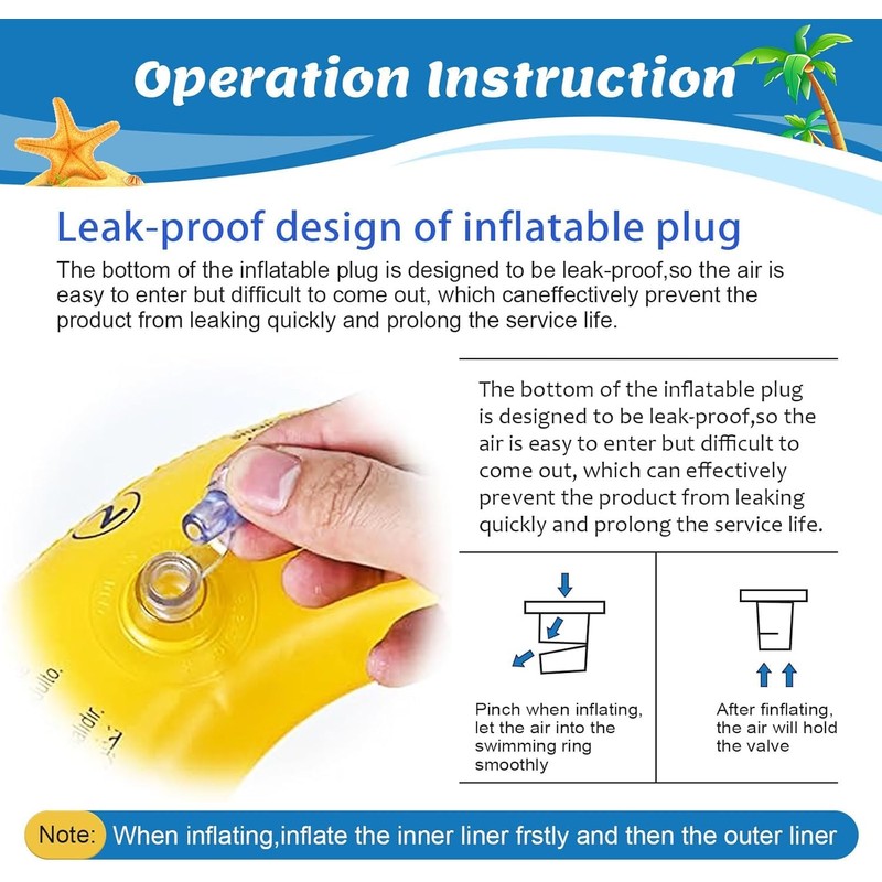 - Guaranteed Service: Please note that you should inflate the inner liner first before inflating the outer liner when using this product correctly.If you are unsatisfied with our swim trainer vest,please contact us,and we will do our best to solve your problem.Please kindly note that this product is not intended as a life-saving device.It must be used under constant adult supervision.In addition,the package does NOT include an air pump.