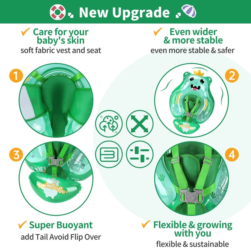 Swimbobo Baby Pool Float Inflatable Transparent Monster Infant Swim Float with Cloth Safety Seat Pool Toys for Kids 6-36 Months (Green)