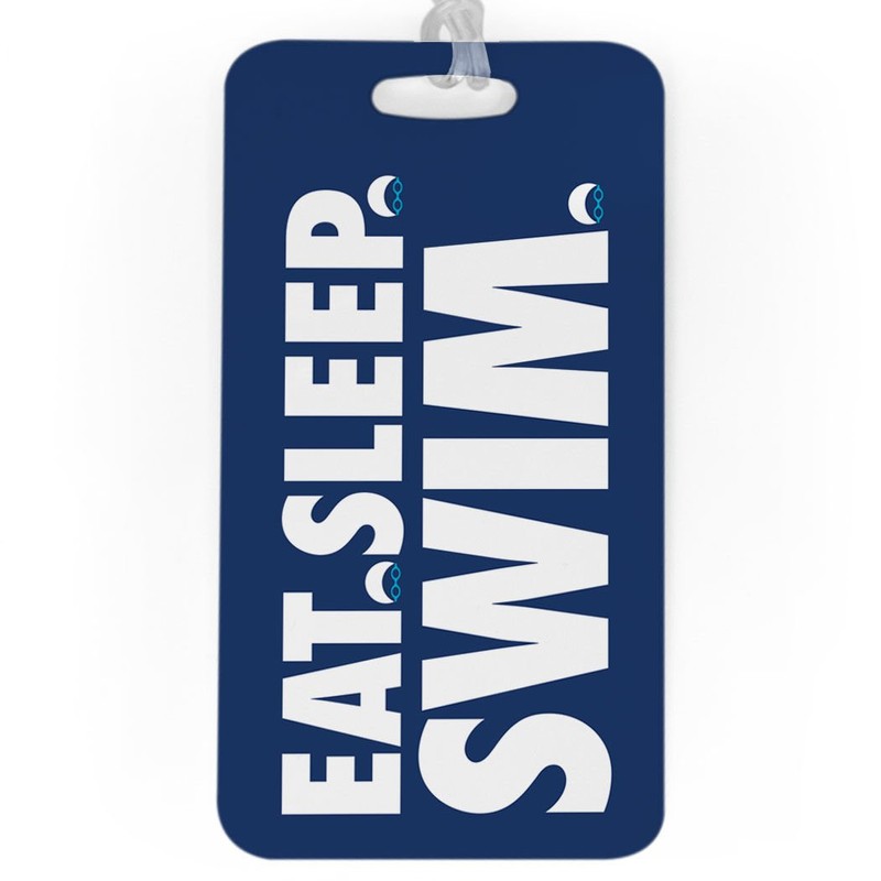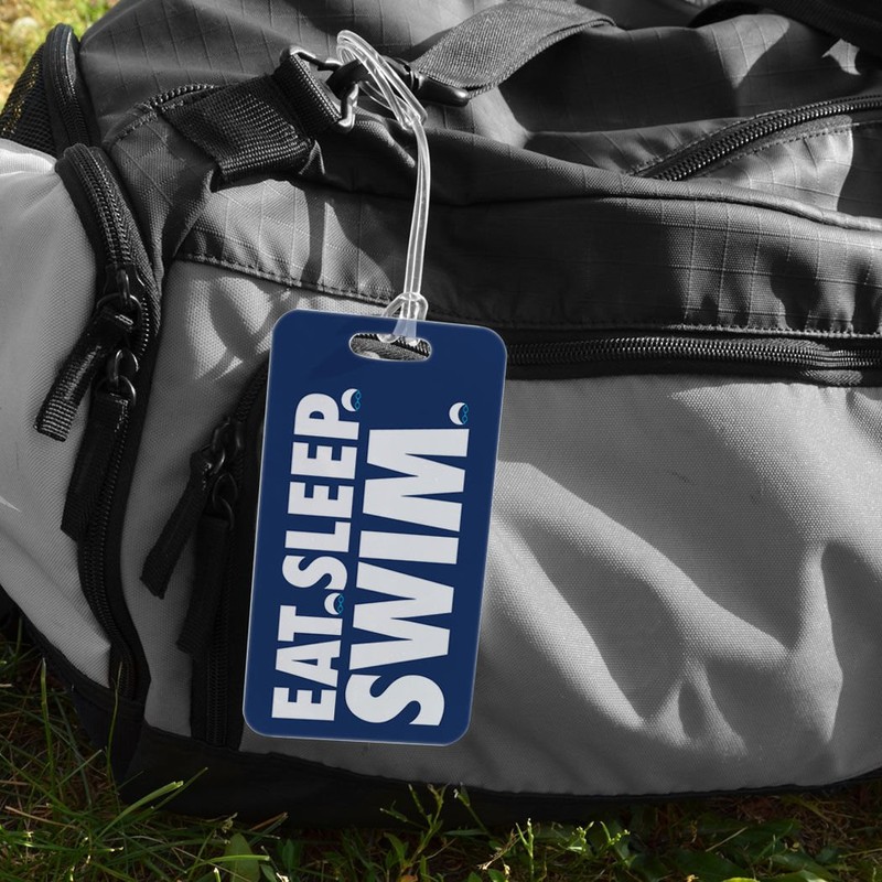 Swimming Luggage & Bag Tag | Eat Sleep Swim | Custom Info on Back | Large | Navy