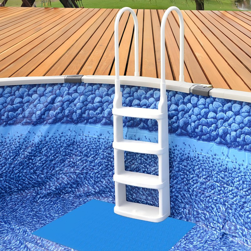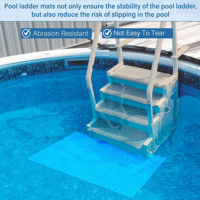 • Non-slip design: the pool ladder mat with non-slip texture, provides safety in climbing the ladder stand and not easy to slip. And its back adsorption capacity is strong, not easy to move. Above Ground Pool Ladder Mat
