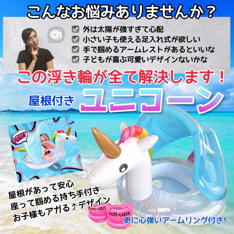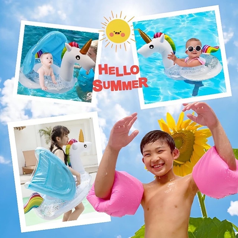 Swimming Ring for Kids, Unicorn with Roof, Arm Ring, Foot Holder, Pool, Girl, Boys