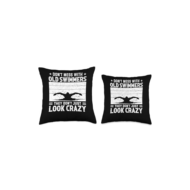 Swimming Team Clothes For Men And Women Don't Mess with Crazy Swimmer Rescue Lifeguard Swimming Throw Pillow, 16x16, Multicolor