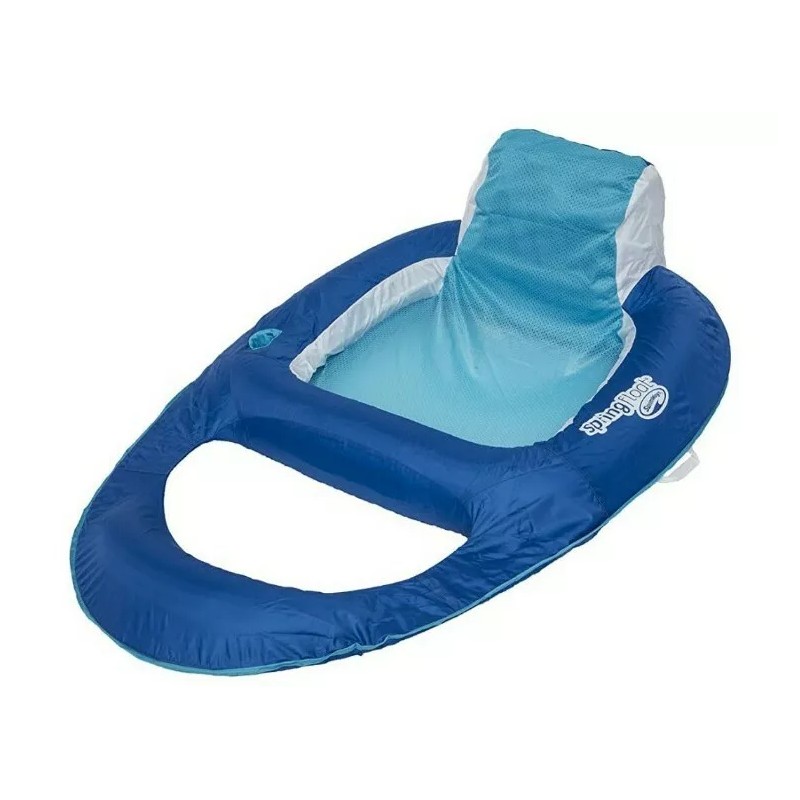 Unfold, inflate and float away in the SwimWays Spring Float Recliner floating pool lounger! Within minutes you’ll be luxuriating in the soft, cooling mesh seat that suspends your lower body just below the surface of the water. Prop yourself up on the integrated headrest, backrest, and ottoman, and stash your favorite beverage in the cup holder. The fabric covering over this inflatable pool float adds durability, and the patented inner spring along the outside edge of the float provides greater stability and comfort in the water. Folds flat into three compact circles for easy storage and portability. Jet valve technology makes inflation/deflation fast so you'll be in and out of the pool faster with no air pump required! Weight capacity: Supports most adults up to 250 lb (113 kg). Dimensions: 56 in x 38 in x 16 in.