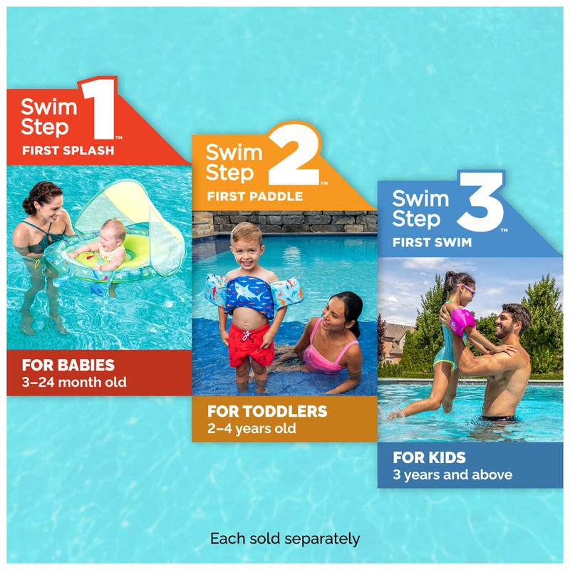 - LEARN TO SWIM: Share your love of the water with your child! Safely introduce your little one to the water in step 1, then allow them to feel secure as they explore by paddling and splashing during step 2, and finally honing their skills and confidence during step 3!