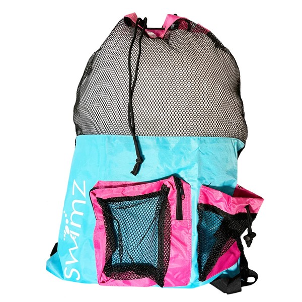 Swimz Elite Club Mesh Backpack - Blue/Pink, Large Swimming mesh Bag