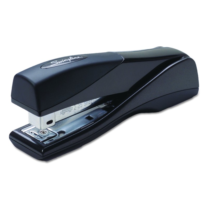 Ergonomically designed specifically for comfortable handheld use. Boasts 25% greater capacity than other desk staplers. Jam-free with Swingline S.F. 4 or Optima premium staples. Stands vertically or sits horizontally. Metal with enhanced soft-feel material for stapling comfort. 2 5/8amp;quot; throat depth. Loads a full strip 210 of 1/4amp;quot; standard staples. including no jamming. Stapler Type: Full Strip Desktop Staple Capacity: Full Strip 210 Staples Size of Staple Used: 1/4amp;quot; Type of Staple Used: Standard.