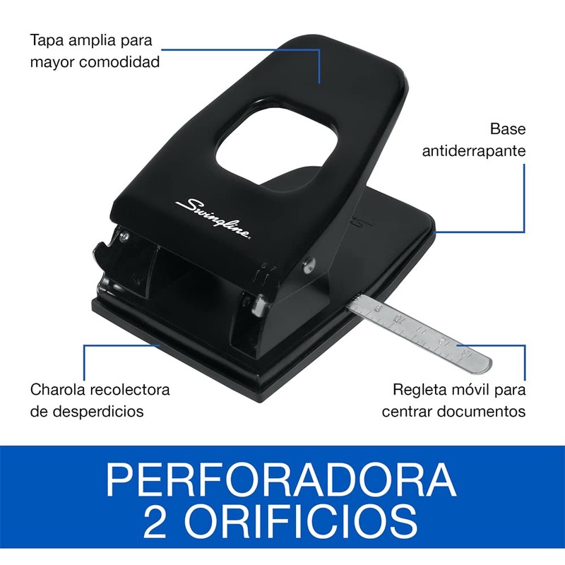 Swingline P2089 Perforadora Ajustable 7/8 cm, 2 Agujeros, Negro