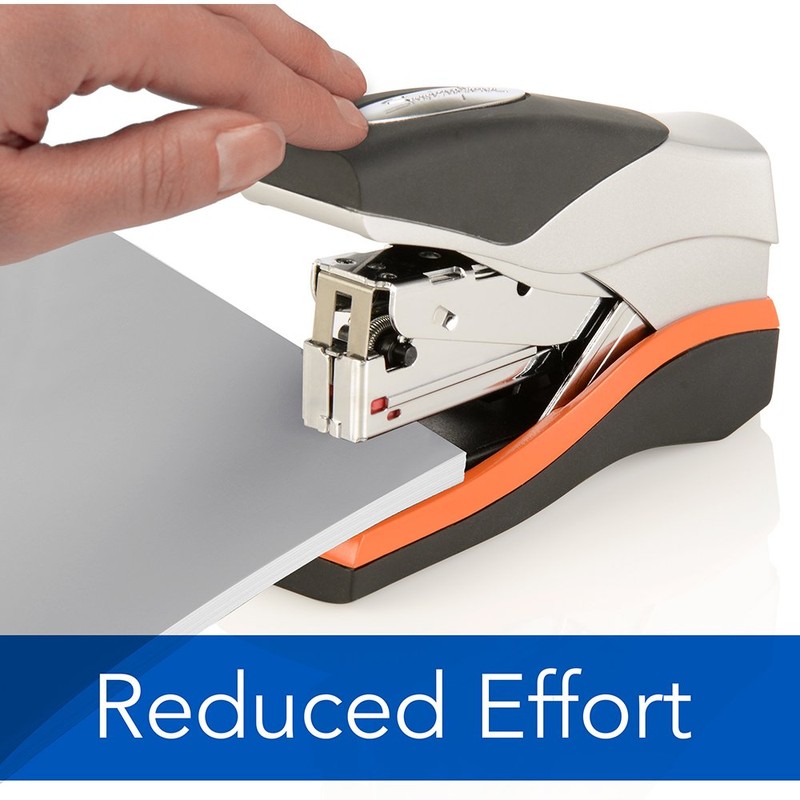 - REDUCED EFFORT – Requires less force to operate than traditional staplers, allowing you to staple more sheets with less effort. Soft, ergonomic grip ensures comfort while stapling.