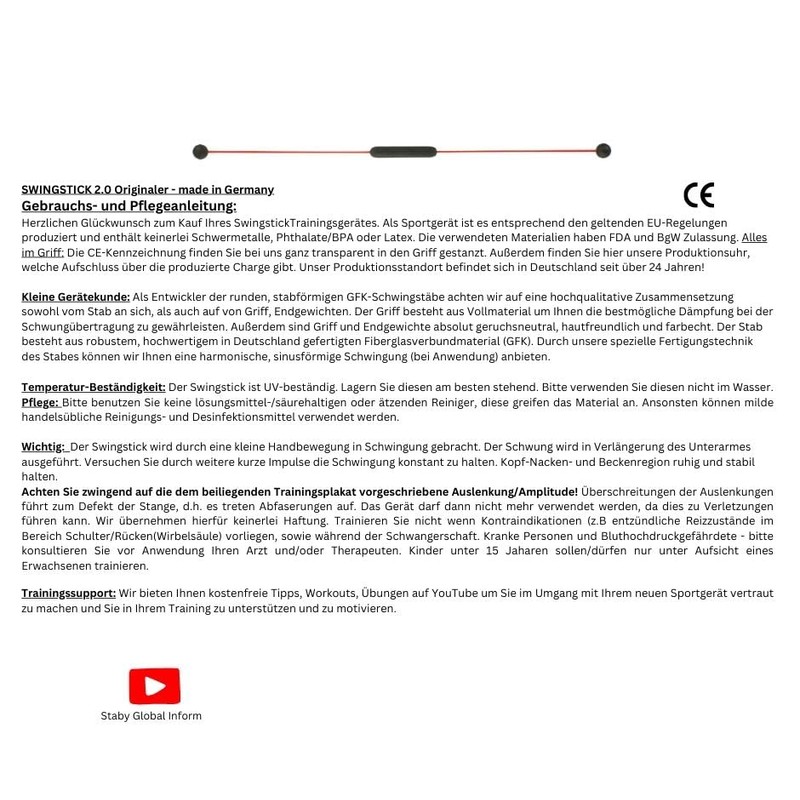 Swingstick Original 2.0 German product - direct from the manufacturer for strong back and core muscles including training poster and online workouts with the swing bar
