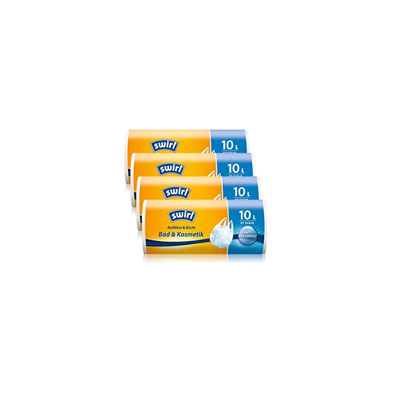 - Box contents: 4 rolls of Swirl bin liners with carry handle, 10 litres with 37 bags per roll, bag dimensions: 40 x 43 cm, brand quality