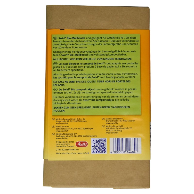 - Swirl Organic waste paper bags are 100% compostable and protect the organic waste bin from heavy dirt