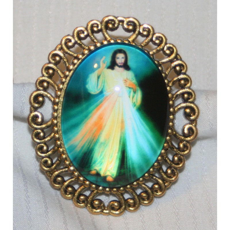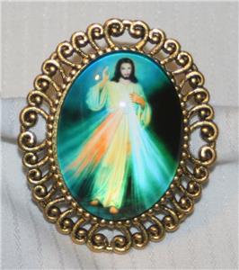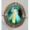 Swirl Rim Goldtone Colorful Divine Mercy of Jesus Cameo Religious Brooch Pin