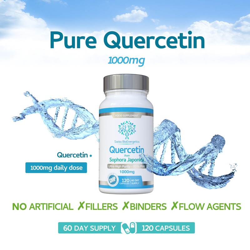swiss bioenergetics Quercetin 1000mg 60-day supply - No Artificial fillers, binders or flow agents - High Strength Pure Quercetin capsules from Sophora Japonica - Suitable for Vegetarians and Vegans C Exclusively UK Made