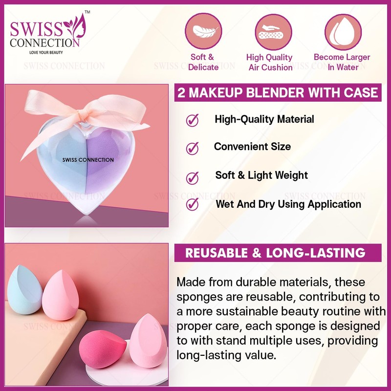 Swiss Connection Makeup Sponge Beauty Blender with Egg Shape, Soft Sponge For Liquid Foundation, Creams, and Powders Latex Free Wet and Dry Makeup Multicolor (Pack of 2)