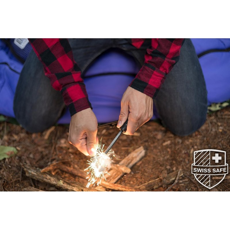 - All-in-One Survival Tool: Beyond its primary fire-starting feature, it incorporates a precision compass for navigation, a 150dB whistle for emergency signaling, a robust steel scraper, and a 450 LB 8-core paracord for any situation & rod.