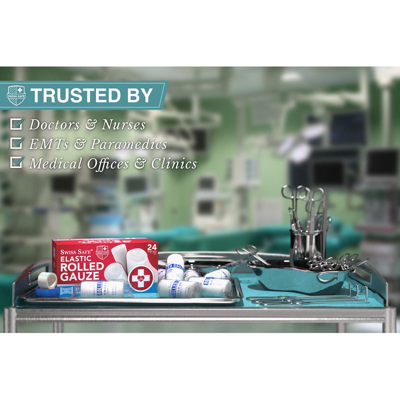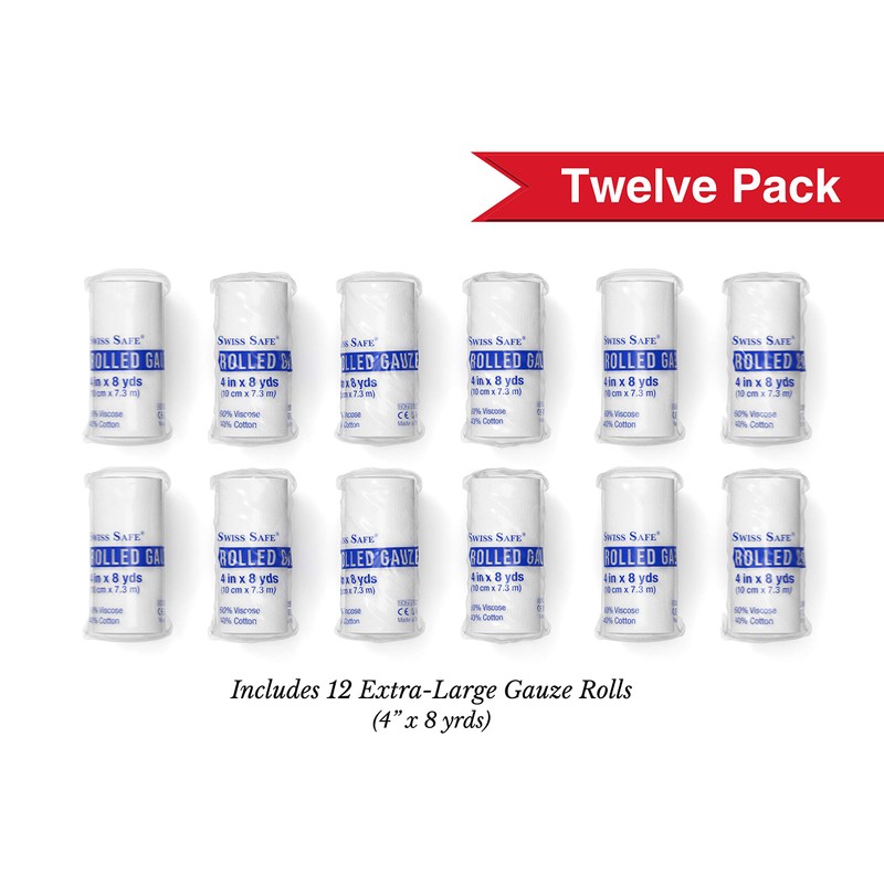 Swiss Safe Long Elastic Stretch Gauze Rolls, 4 Inch x 8 Yards, (12 Pack)