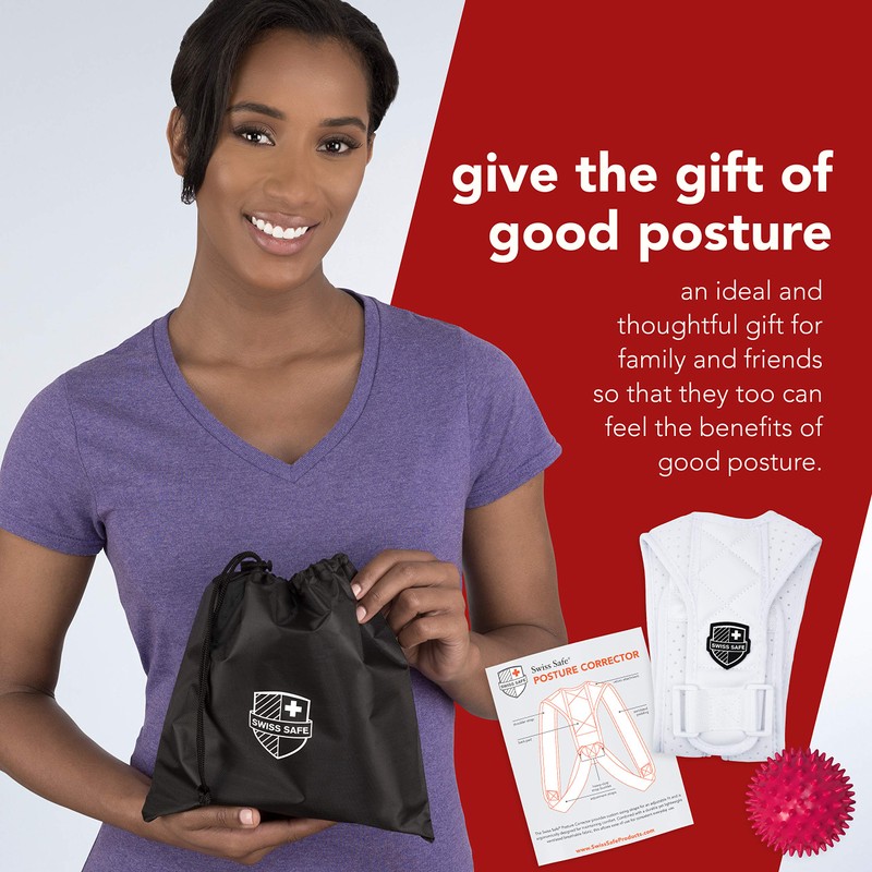 Swiss Safe Posture Corrector for Men/Women - Stylish & Discreet Ergonomic Back Straightener Brace for Proper Posture & Spinal Pain Relief - (White, Large Size)