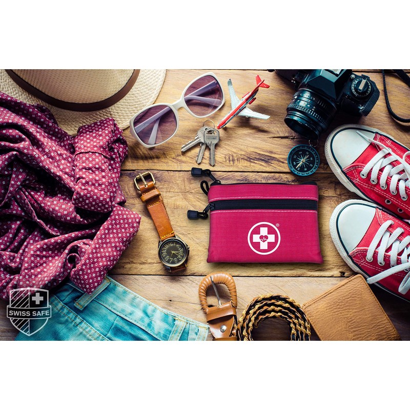 Swiss Safe Survival First Aid Kit Pocket Sized Pouch, Lightweight & Compact with Dual Zippers (64 Pieces)