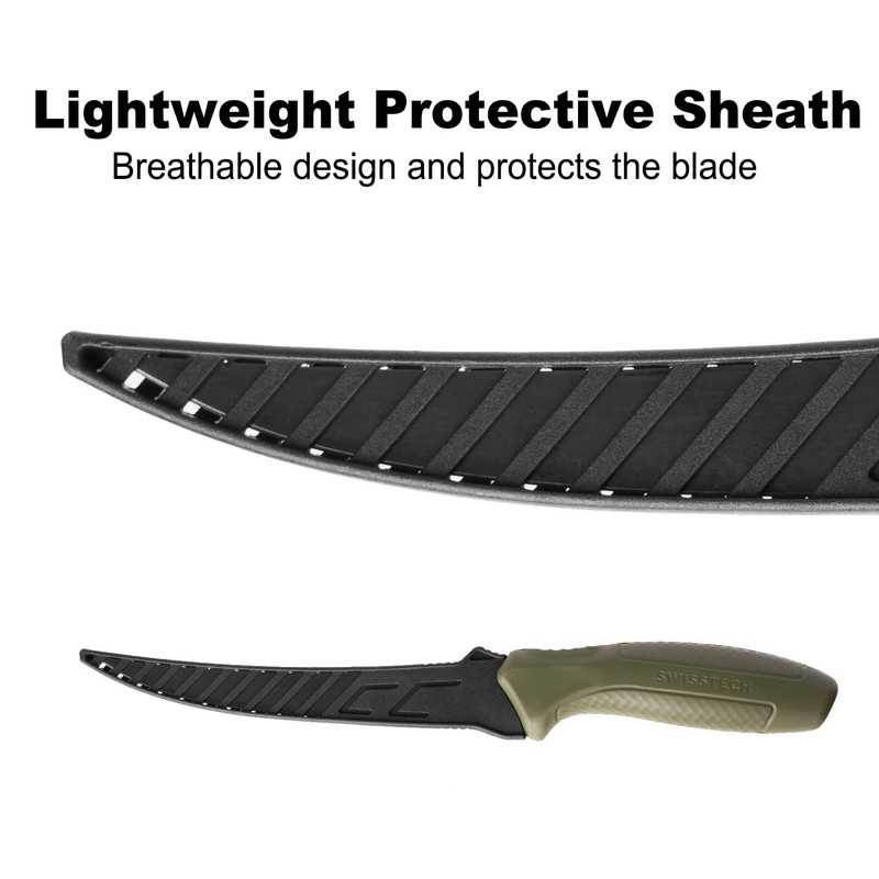 Swiss+Tech - Cuchillo de filete de 6 pulgadas para pescado, cuchillo de pesca para filetear y deshuesar, con mango de espuma flotante y funda protectora