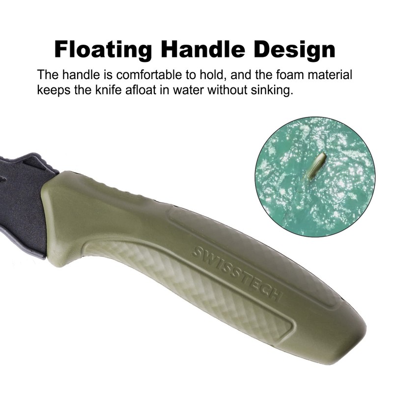 - Mango flotante: el mango espumado mantiene tu cuchillo flotante cuando cae al agua. Mango ergonómico que se adapta cómodamente a tu mano y te permite controlar la hoja mientras mantiene un agarre firme en el cuchillo, incluso cuando el mango del cuchillo se cubre de agua, sangre o baba de pescado.