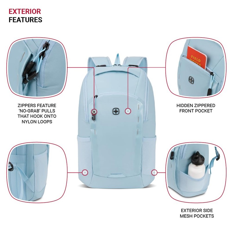 • Pass-Thru Trolley Sleeve: A must-have travel backpack for men and women, this Swiss Gear backpack includes a rear sleeve that fits over luggage extension handles for easy and convenient movement through airports