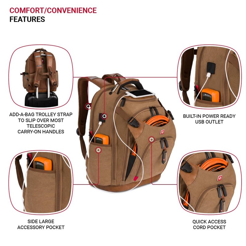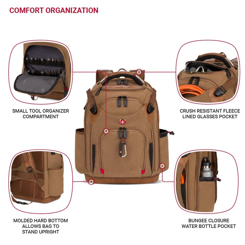 SwissGear Tool Bag Backpack, Fits Up to 17-Inch Laptop, Work Pack PRO, Brown Canvas