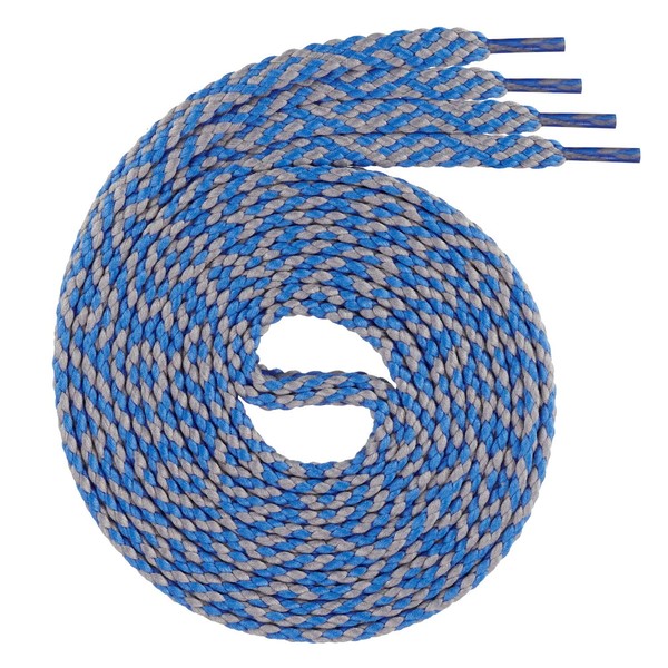 Swissly 1 pair of flat shoelaces for trainers and sports shoes – very tear-resistant – approx. 7.0 mm wide made of 100% polyester, colour: blue/grey, length: 160 cm