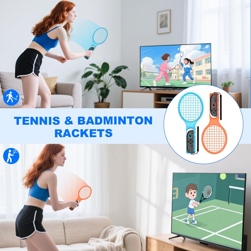- Perfect family party games with 13 Switch 2 sports accessories - Compatible with Switch 2 & Switch Sport! The set includes golf clubs, tennis rackets, football/volleyball straps and sword grips for realistic playing feel. Thanks to the ergonomic shape and durable ABS plastic, each piece can withstand intense game evenings. Includes 6 playing card case, carry bag and stick protection caps - ideal for birthdays or Christmas gifts.