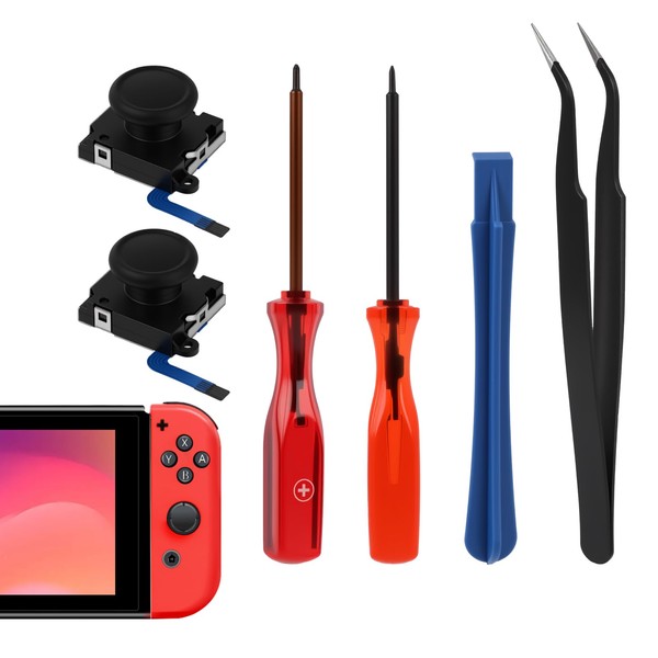 Switch Analog 3D Joystick Replacement & Repair Tool Kit for Switch/OLED/Joy-Con/Lite Controller, Joy-Con & Lite Controllers - Includes 2 Joysticks, Tri-Wing & Cross Screwdrivers (Not Suitable for NS2)