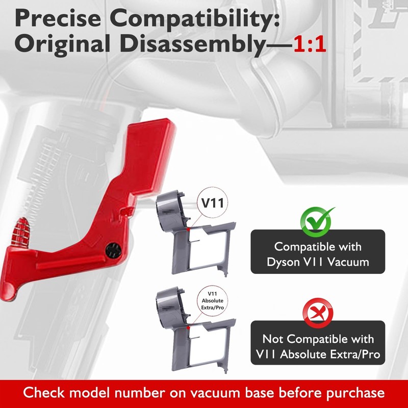 - Wide Compatibility: The trigger assembly replacement is made from parts of a disassembled vacuum to fit with Dyson V11 mainframe structure.