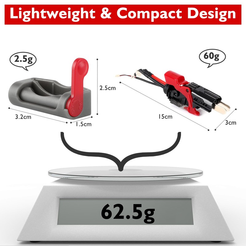 - Effortless Operation: Combined weight of switch assembly + trigger lock is only 62.5g, reducing handle load. Easily control switch status via vertical twisting motion for enhanced comfort.