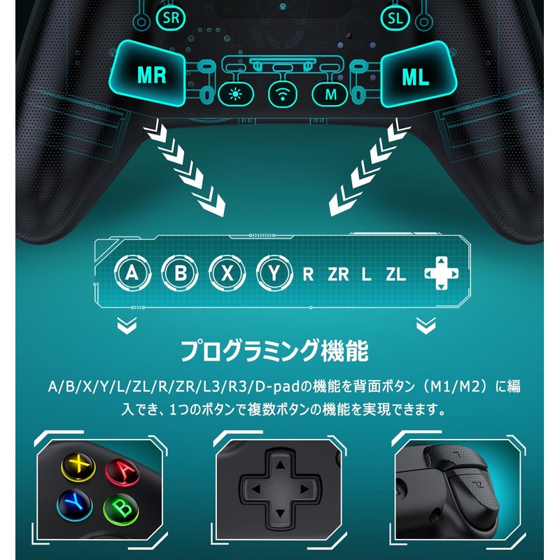 Switch Controller, 8 Color RGB Light, Program Editing Function, Back Button, Wake/Wake Switch, Controller, Wireless Switch, Pro Controller, Equipped with Gyro Sensor, Continuous Fire Function,