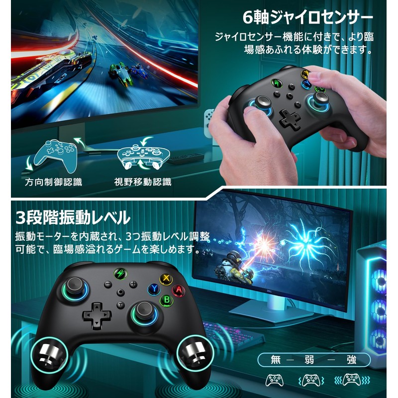 - (3-Stage Vibration Function & 3-Stage Continuous Shooting Function) Switch Pro Con has 4 vibration levels to further enhance the immersive experience. With three levels of vibration intensity, 50% (medium) and 100% (high), players can feel more immersive and immersive in the game. This switch pro controller also has turbo function. You can set both automatic continuous shooting and manual continuous shooting. You can set a continuous shooting speed (5 times/second, 12 times/sec, 20 times/second) depending on the game, so you can enjoy your game to the fullest. The turbo settings such as continuous firing speed can be determined by the vibration of the Switch Pro Controller. For fighting games, please use this continuous firing function to increase your victory