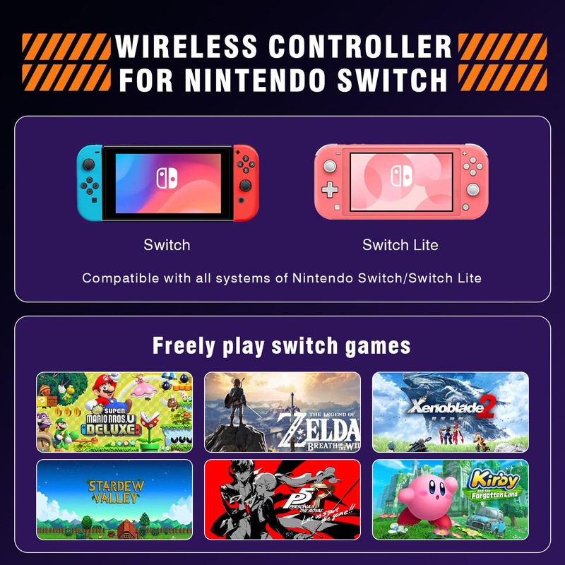 - works for swtich games and 4 gamer together; Switch pro controller is ideal for family fun, parties and nice gift for game lovers