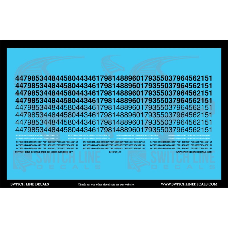 Switch Line Decals HO Scale BNSF GE Loco Number Decal Set