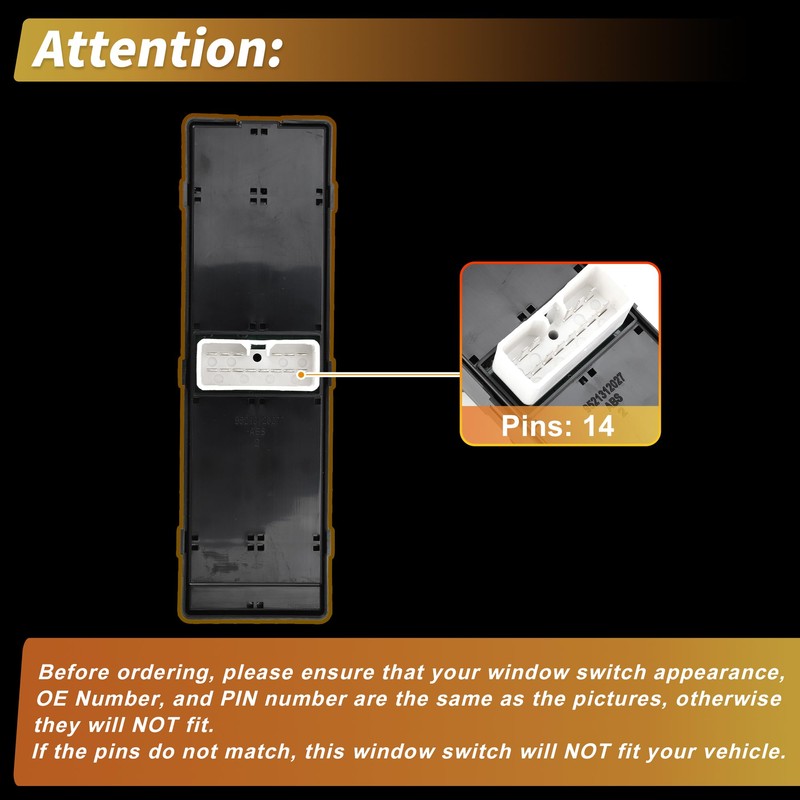 - [Features] Replace the old driver window switch if it's broken, or cracked. After 50,000 Times Life Test, the window switch has no corrosion or rust, the switch performance is good, the buttons are smooth and there is no sticking. Made of plastic, durable for your car.