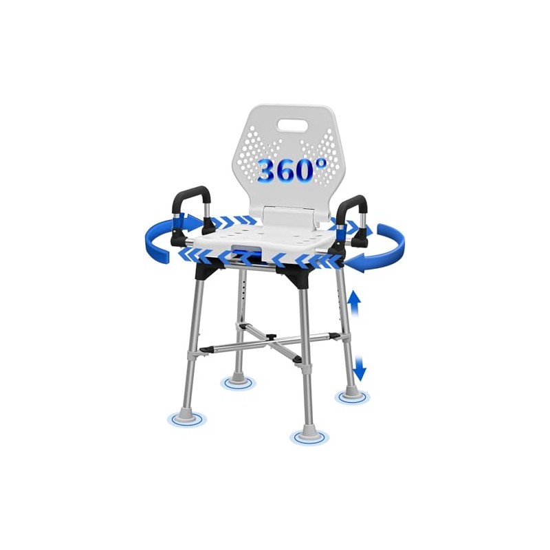 Swive Shower Chair with Arms and Back for Seniros Elderly Disabled or Bariatric Adults, Bench Seat for Inside Shower Stall and Bathroom Bath Tub Seats Adjustable Stool Heavy Duty 500 lbs sit Chairs