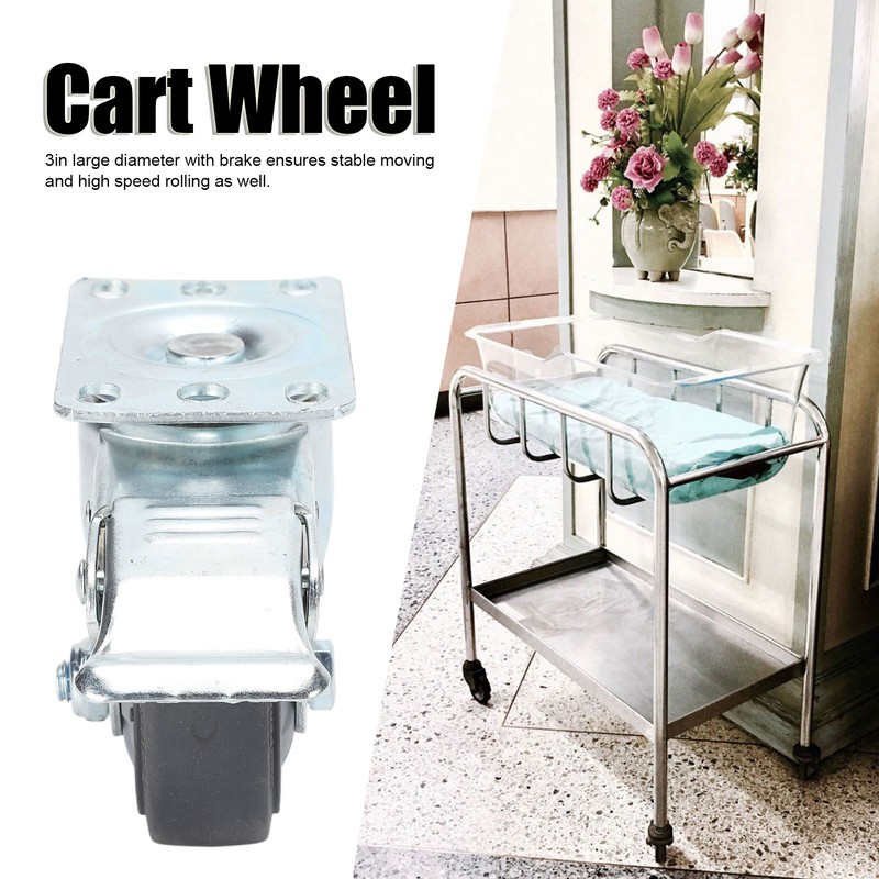 1、Smooth Rolling: 3in large diameter with brake ensures stable moving and high speed rolling as well. 2、Free Swivelling: Thickened and reinforced shaft enables flexible steering and flexible swivelling. 3、Good Materials: Stainless steel and TPR materials bring great load bearing capacity and durability. 4、Low Work Noise: Sturdy with shock and impact, the reliable movement has low noise and timely braking. 5、Convenient Use: Very convenient to install on trolley, cart, etc., which can be completed in minutes.