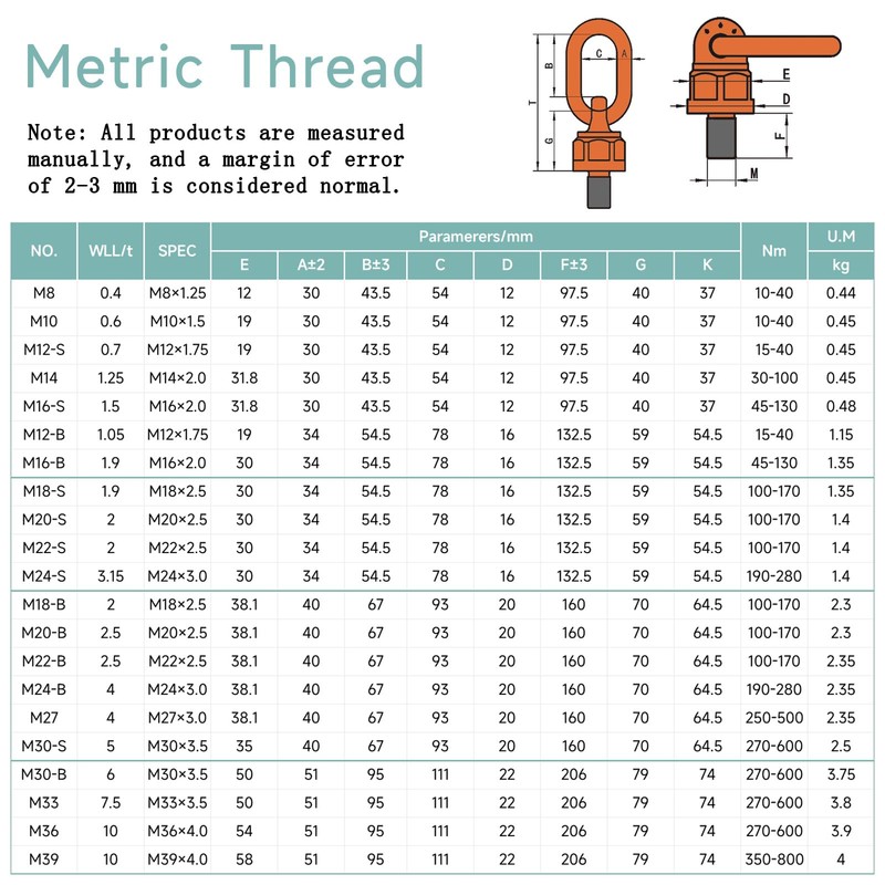 - 【360°Rotation】Built-in ball bearings enable 360° vibration-free rotation with uniform force distribution and zero torque, ensuring smooth operation, robust durability, and adaptability to multi-angle loads. When load direction changes, the lifting ring rotates with the force without twisting, delivering stable rotation and reliable performance.