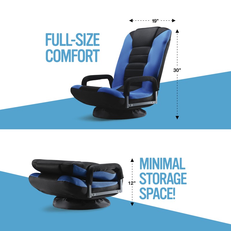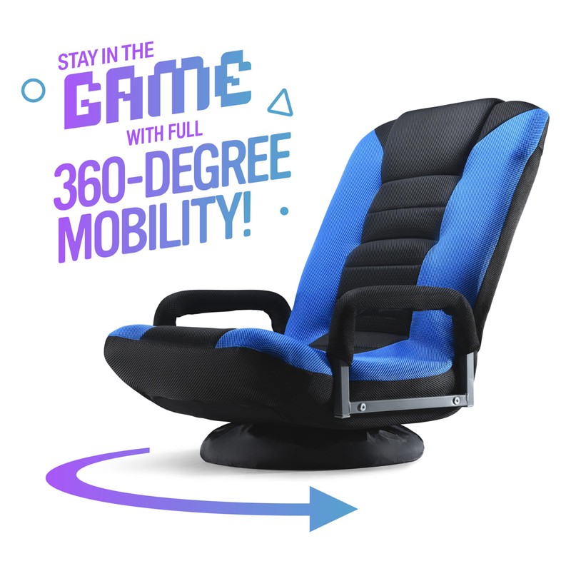 Maple99 Swivel Gaming Floor Chair - Enjoy 6 Different Positions, Adjustable Lumbar Support, Removable Polyester Cover & Arm Rests, Folds to Store, Stylish Blue with Black Center Stripe