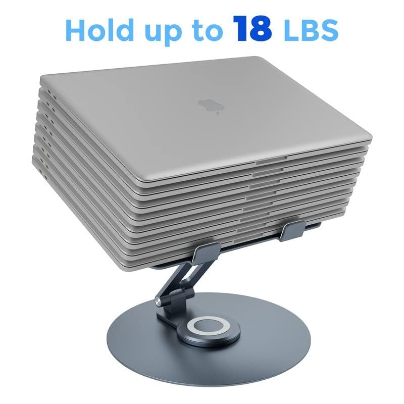 Swivel Laptop Stand for Desk, Adjustable Height Aluminum Computer Stand with 360 Rotating Base, Foldable Ergonomic Riser, Portable Laptop Holder Compatible with MacBook, All Laptops 10-17'', Grey
