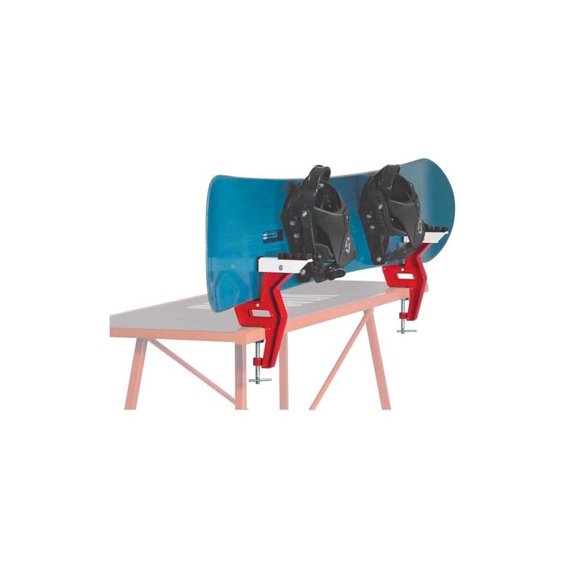 - CONSTRUCTION - A bomber two-piece snowboard vise, built of aluminum and painted a racy red.