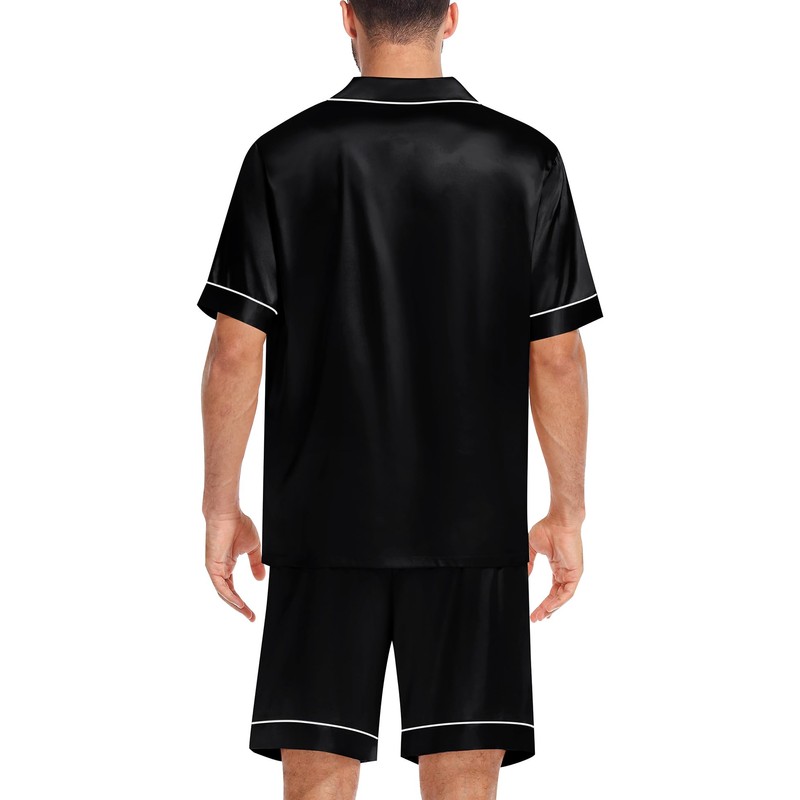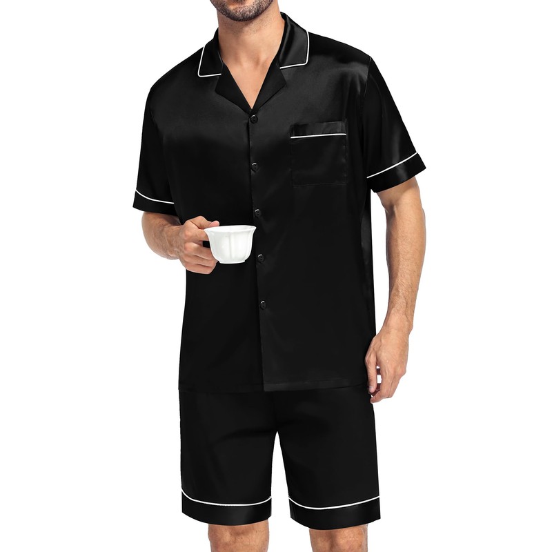 - đăCouple Matching Pajama Setă This is a pajama set for couples, made of comfortable satin fabric, (96% polyester + 4% spandex), featuring smooth, soft, lightweight, cool and glossy feel. Enjoy breakfast with your family or lover in this pajama set and spend a nice relaxing time together at home.