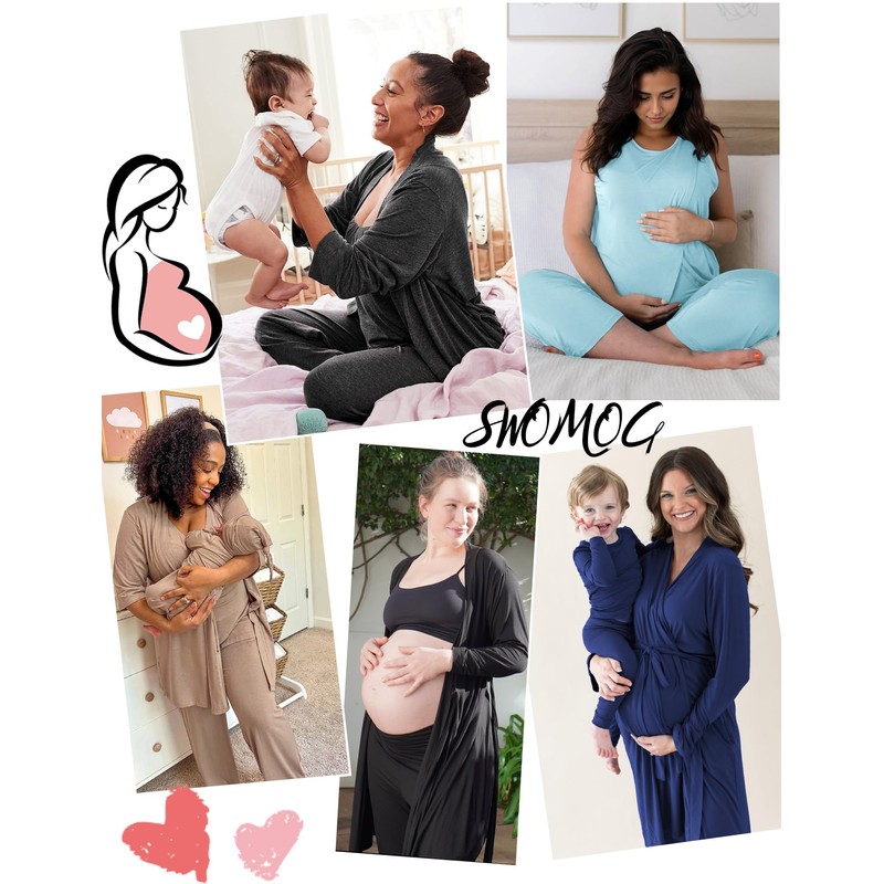 - MATERNITY ROBE SET: Soft, skin-friendly, breathable, lightweight and stretch fabric, suitable for new moms, expectant mothers and all stages of pregnancy, labor, delivery and breastfeeding, protects the sensitive, delicate skin of you and your baby