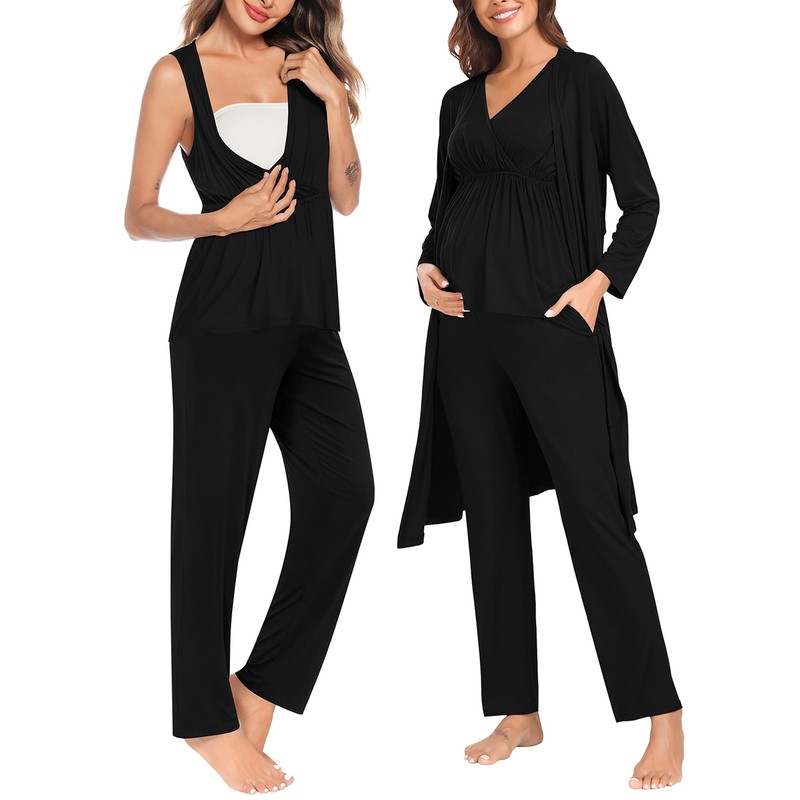 - 【Soft & Comfy Material】This 3pcs maternity nursing pajama robe set is made of 95% Rayon and 5% Spandex,soft,skin-friendly,breathable,lightweight and stretch fabric, suitable for new moms, expectant mothers and all stages of pregnancy, labor, delivery and breastfeeding, protects the sensitive, delicate skin of you and your baby.