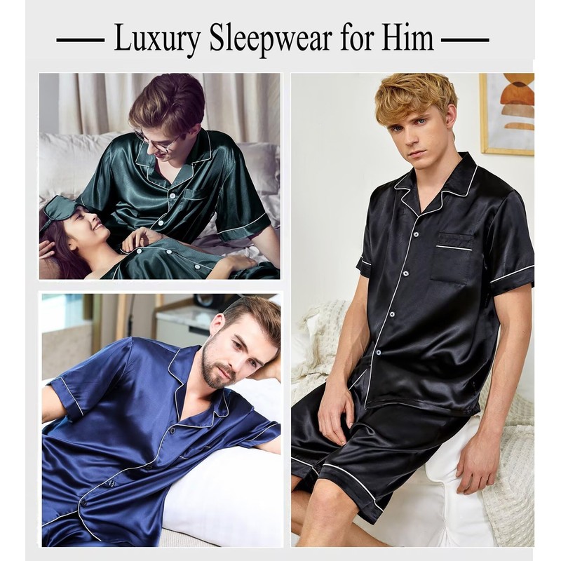 • PRESENT - The men satin sleepwear sets is perfect for sleeping, bathing and lounging indoor and outdoor. Great choices for your husband, boyfriend, brother and son as a birthday gift and beautiful present for Father's day, Valentine's Day and Christmas.