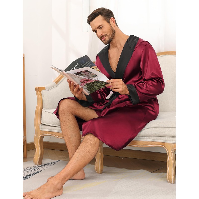 Treat yourself to a bit of luxury and refinement and spice things up while you're at it. Silky soft and comfy satin robe with shorts set is suitable for all-year-round wearing, perfect for bath, shower, loungewear, swim pool, hotel, vacation, party, wedding, sauna, spa, hot tub, gym, and leisure time. This lightweight robe is perfect all day long. This men's robe set can meet your needs throughout the year.