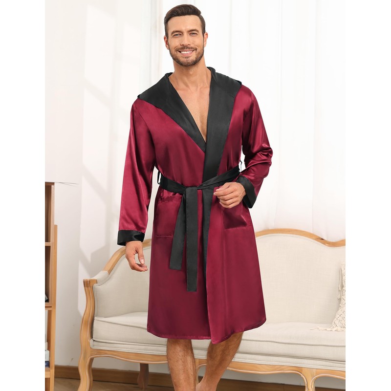 - Premium Fabric: Mens Hooded robe sets are made of 95% Polyester, 5% Spandex high-quality imitation silk fabric, which is lightweight, soft, breathable, smooth and skin-friendly