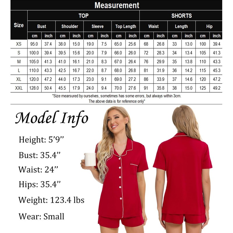 - 2 PIECE PJS SET: Our short sleeved pajamas women include button front tops and elastic waisted pajama shorts. Classic style design, comfortable fit, strong and wear-resistant stitching, bringing you the best comfort during your leisure time