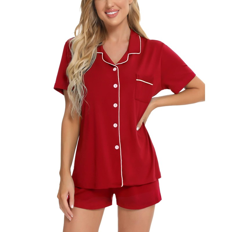 SWOMOG Pajama Sets for Women 2 Piece Button Up Pjs Short Sleeve Sleepwear Postpartum Modal Loungewear Christmas Short Pyjamas, Red M